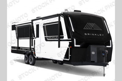The drop frame chassis will provide a smooth tow from home to campground, and the one-touch automatic leveling system will have you set up in no time. You will love the sleek styling with automotive-grade exterior graphics, along with the square Euro frameless windows with 6" openings. Inside, there are premium residential cabinet and drawers, solid surface countertops, Brinkley's CraftSense wood trim construction, and many more premium features.