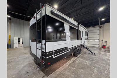 The Model Z features wide stance leveling jacks for easy set-up, an automotive grade front cap, lights and lens for a superb upscale look and feel. It also features industry first brass plumbing connections, quad entry solid steps with motion lights, and two outside hot/cold showers! On the inside, clean lines and a modern look that is both warm and inviting. There is ample storage both inside and out with tons of overhead cabinets, drawers and shelves.