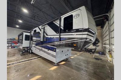 The Forest River RiverStone fifth wheels and toy haulers are luxurious units that have it all! You'll find an automatic six-point hydraulic level-up system to keep your unit in place, and there is preparation for a four-camera observation system. The TravlFi Journey XTR 4G/LTE router and WiFi extender will help you stay connected to the outside world, and you'll never have to overpack again since the Splendid “Astral” stackable washer and dryer will let you clean the small amount of clothes you've brought with you. Another high luxury is the Fischer Paykal dishwasher which will allow you to spend more time enjoying your camp life and less time cleaning up. Each unit is built with an LCI Road Armour suspension system, dual-pane frameless windows, a full docking station, a 200W solar panel, and a BMPro touch control system.