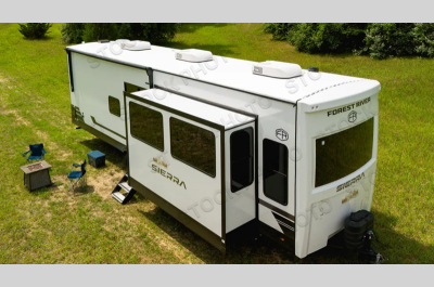 View All 389HBFL In Stock »  Forest River Sierra Destination Trailers 389HBFL highlights: - King Bed Slide