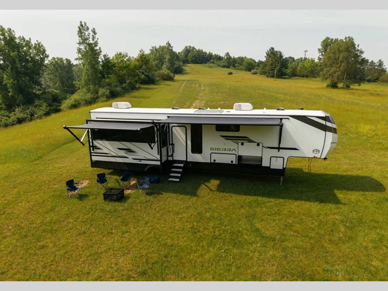 Make the most out of every adventure with a Forest River Sierra fifth wheel! With unique models like bunkhouses, front living areas, and mid-bunk/office rooms, you can be sure to find one that best fits your needs.