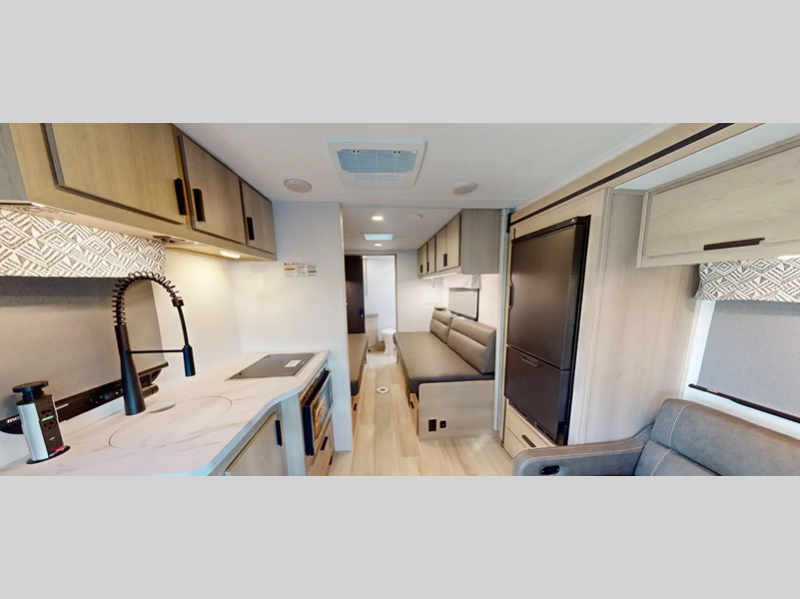 Sleeps 3 Length 25 ft 6 in Ext Width 7 ft 3 in Ext Height 10 ft 5 in GVWR 10360 lbs Fresh Water Capacity 35 gals Grey Water Capacity 30 gals Black Water Capacity 30 gals Generator 2.8 kW Onan Gas Fuel Type Gasoline Engine 3.5L EcoBoost V6 Chassis Ford Transit AWD Fuel Capacity 25 gals Wheelbase 178 in Available Beds Full Refrigerator Type LP/Electric 110V Refrigerator Size 5.3 cu ft Convection Cooking Yes Shower Size 24" x 32" Number of Awnings 1 Axle Weight Front 4130 lbs Axle Weight Rear 7275 lbs LP Tank Capacity 41 lbs Water Heater Type Truma Combi AC BTU 13500 btu TV Info LR 12V LED TV Awning Info Power with LED Lights Gross Combined Weight 13500 lbs Shower Type Standard Electrical Service 30 amp Similar Floorplans