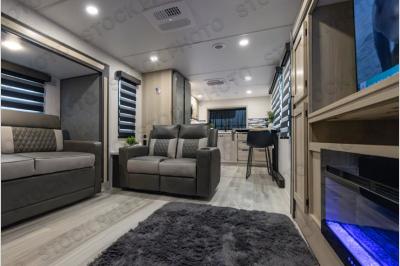 With any Wildcat fifth wheel by Forest River, you will enjoy affordable luxury at every turn. These models are constructed with residential fiberglass insulation in the roof and floor, a 4'x6' sectioned underbelly armor, and a vacuum bonded, welded aluminum structure for added strength and durability. You will also find seamless roto-cast holding tanks, an outdoor shower, and 4-point auto leveling for quick and easy setup. Each model includes a best-in-class, high-efficiency 35,000 BTU furnace, along with an electric fireplace with thermostat control and remote, plus a 60,000 BTU tankless water heater for added convenience. There are carpet-free living spaces, residential backsplash, motion lighting throughout, and many more comforts!