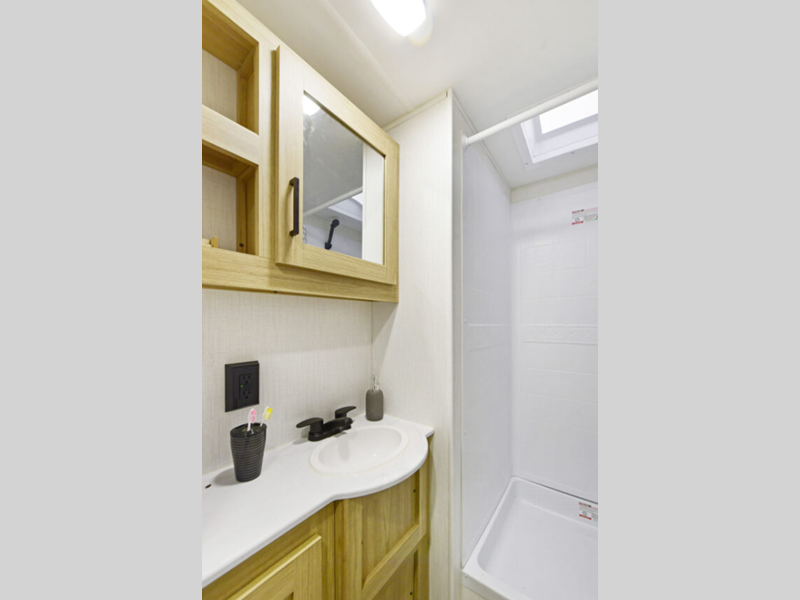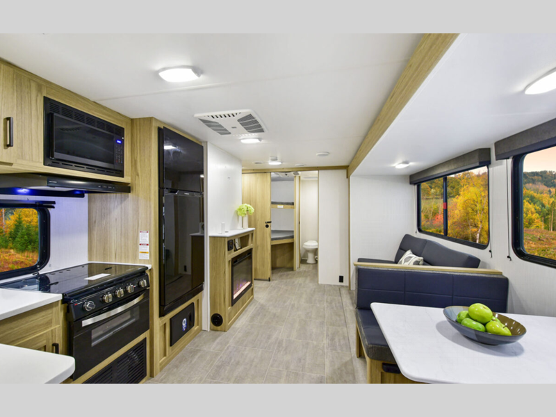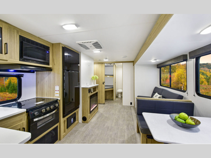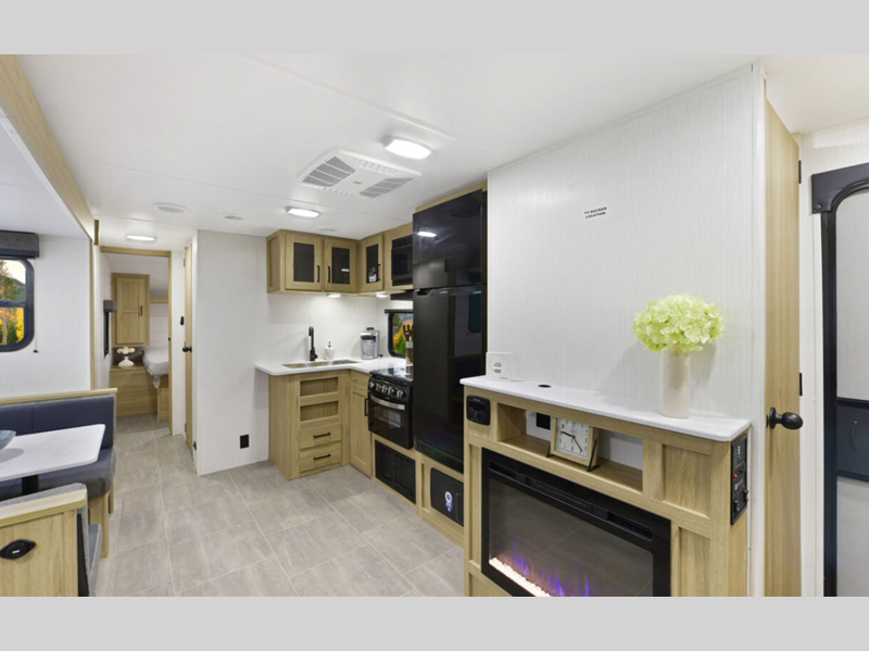 Sleeps 5 Slides 1 Length 31 ft Ext Width 8 ft 1 in Ext Height 11 ft Fresh Water Capacity 41 gals Grey Water Capacity 60 gals Black Water Capacity 30 gals Furnace BTU 30000 btu Available Beds Queen Refrigerator Type 12V Refrigerator Size 10.7 cu ft Cooktop Burners 3 Number of Awnings 1 LP Tank Capacity 20 lbs Water Heater Capacity 6 gal Water Heater Type DSI AC BTU 13500 btu Awning Info 17' Power w/LED Light Strip Axle Count 2 Number of LP Tanks 2 Shower Type Standard Electrical Service 30 amp Similar Floorplans