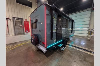 The Reign travel trailers by Keystone are premium single-axle units that are sure to make an impression at the campground. Each one is built with an exclusive automotive-finished aluminum exterior, a walkable roof, and a 100% composite floor for added durability. There are also tinted safety glass windows, quick drop stabilizer jacks, and an exterior shower with hot and cold water. The European inspired interior design is unique and cozy, and the 78" interior height will give you plenty of space to move about. You will also enjoy the ultra bright LED light strip and solid surface countertops in the kitchen, along with blackout night shades, and many more interior comforts.