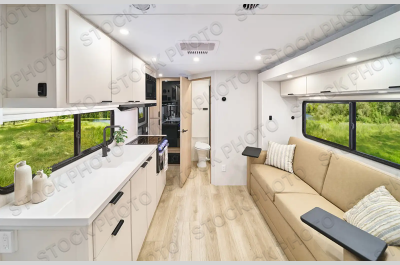 Sleeps 3 Slides 1 Length 22 ft 11 in Ext Width 8 ft Ext Height 10 ft 6 in Int Height 6 ft 8 in Interior Color Modern Luxe Hitch Weight 486 lbs GVWR 6000 lbs Dry Weight 4740 lbs Fresh Water Capacity 49 gals Grey Water Capacity 40 gals Black Water Capacity 40 gals Tire Size 225/75R15E Furnace BTU 18000 btu Available Beds Queen Refrigerator Type 12V Refrigerator Size 10.6 cu ft Cooktop Burners 3 Shower Size 34" x 34" Number of Awnings 1 Axle Weight 3000 lbs LP Tank Capacity 40 lbs Water Heater Type Tankless AC BTU 15000 btu TV Info Smart TV Awning Info 14' Powered patio awning w/LED lighting Axle Count 2 Number of LP Tanks 1 Shower Type Radius Electrical Service 30 amp Similar Travel Trailer Floorplans